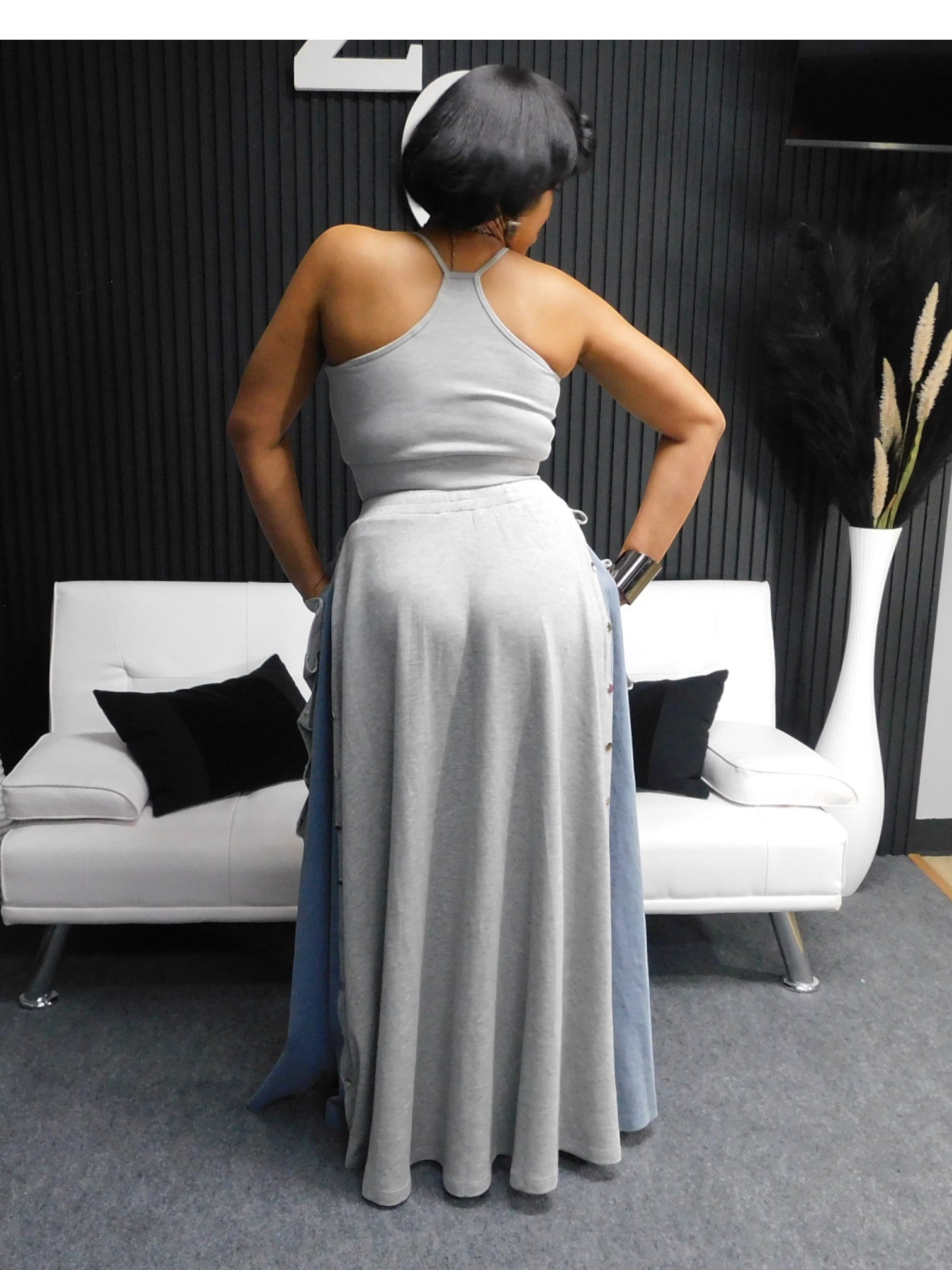 The Anika Two Piece Top is a cropped sweater and tank top to match with denim trim accents on the cropped sweater.  She has adjustable...